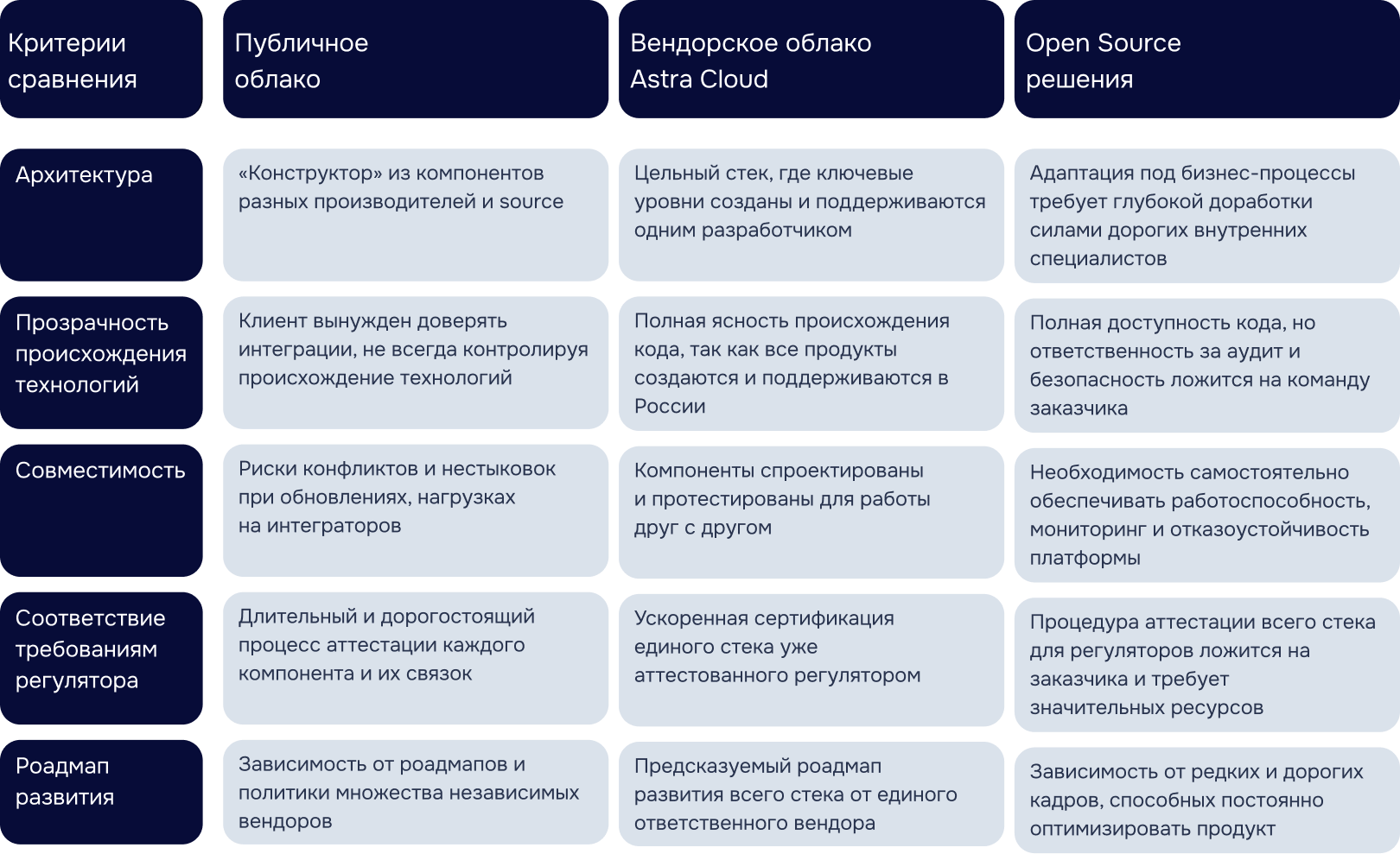 Astra Cloud предлагает полноценное партнерство, в котором ответственность за технологический стэк, его безопасность и развитие лежит на вендоре. Оставьте заявку на бесплатную консультацию.