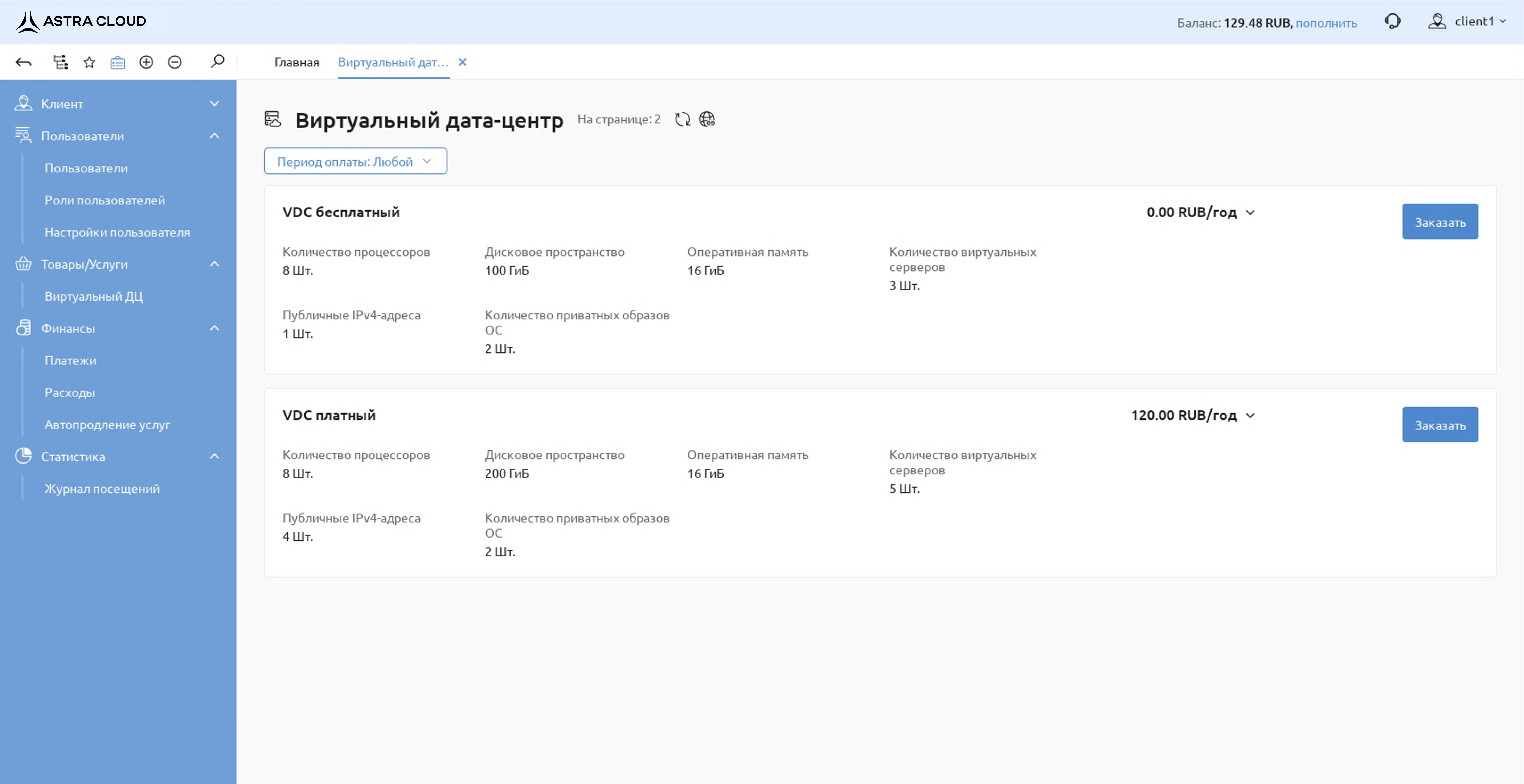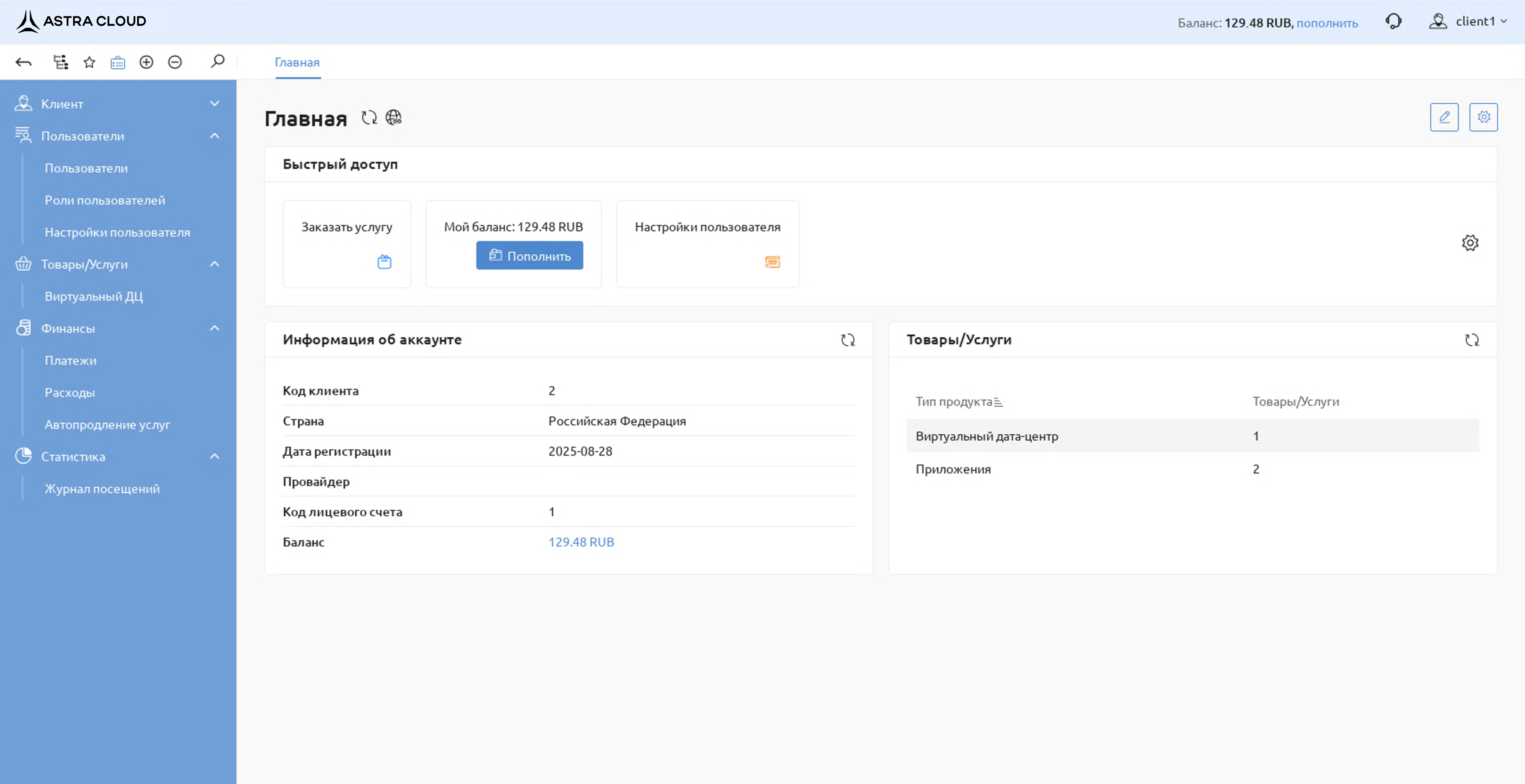 1. Личный кабинет пользователя